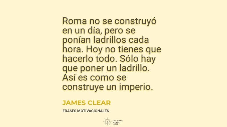 - «Roma no se construyó en un día, pero se ponían ladrillos cada hora. Hoy no tienes que hacerlo todo. Sólo hay que poner un ladrillo. Así es como se construye un imperio.» – James Clear