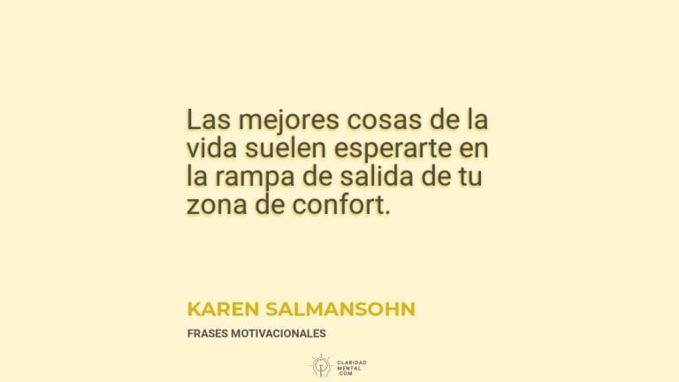 - «Las mejores cosas de la vida suelen esperarte en la rampa de salida de tu zona de confort.» – Karen Salmansohn